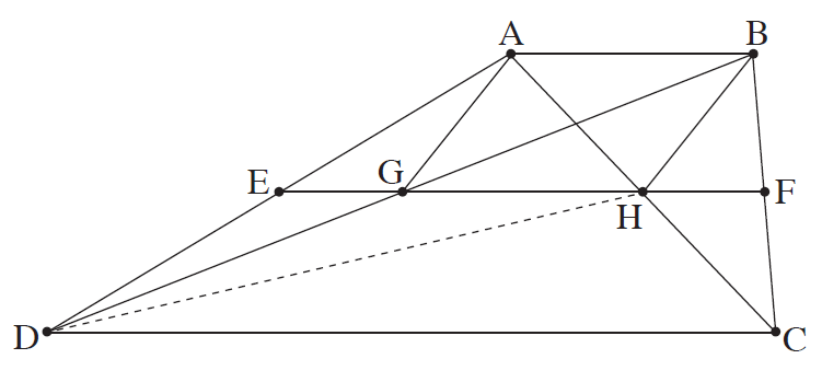 הקטע EF חותך את האלכסונים AC ו- BD של הטרפז בנקודות H ו- G בהתאמה.