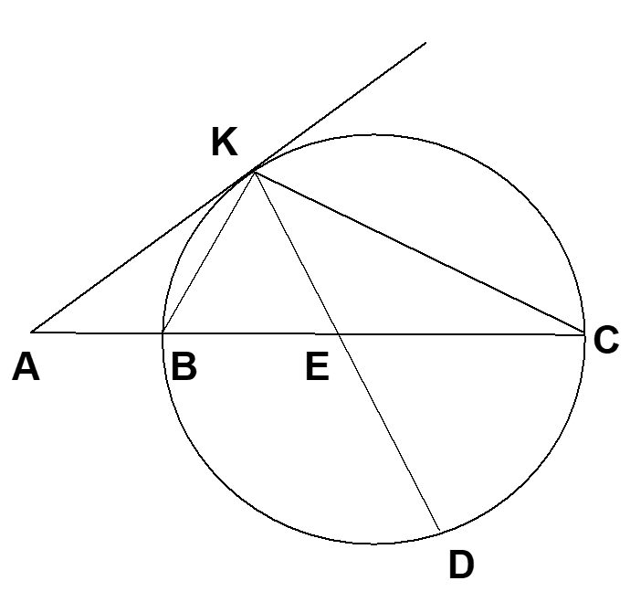 מיתר KD חותך את המיתר BC בנקודה E, כך ש- BE = BK.