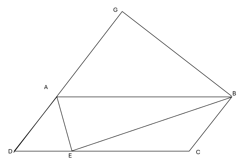 ב. האריכו את הצלע DA עד לנקודה G וחיברו את G עם B כך ש- \(∢AGB=90°\).