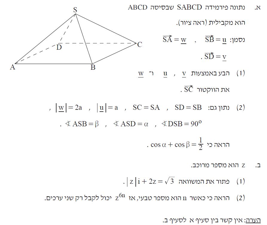 פתרון מלא לשאלה 3 בגרות קיץ 2013 מועד א'
