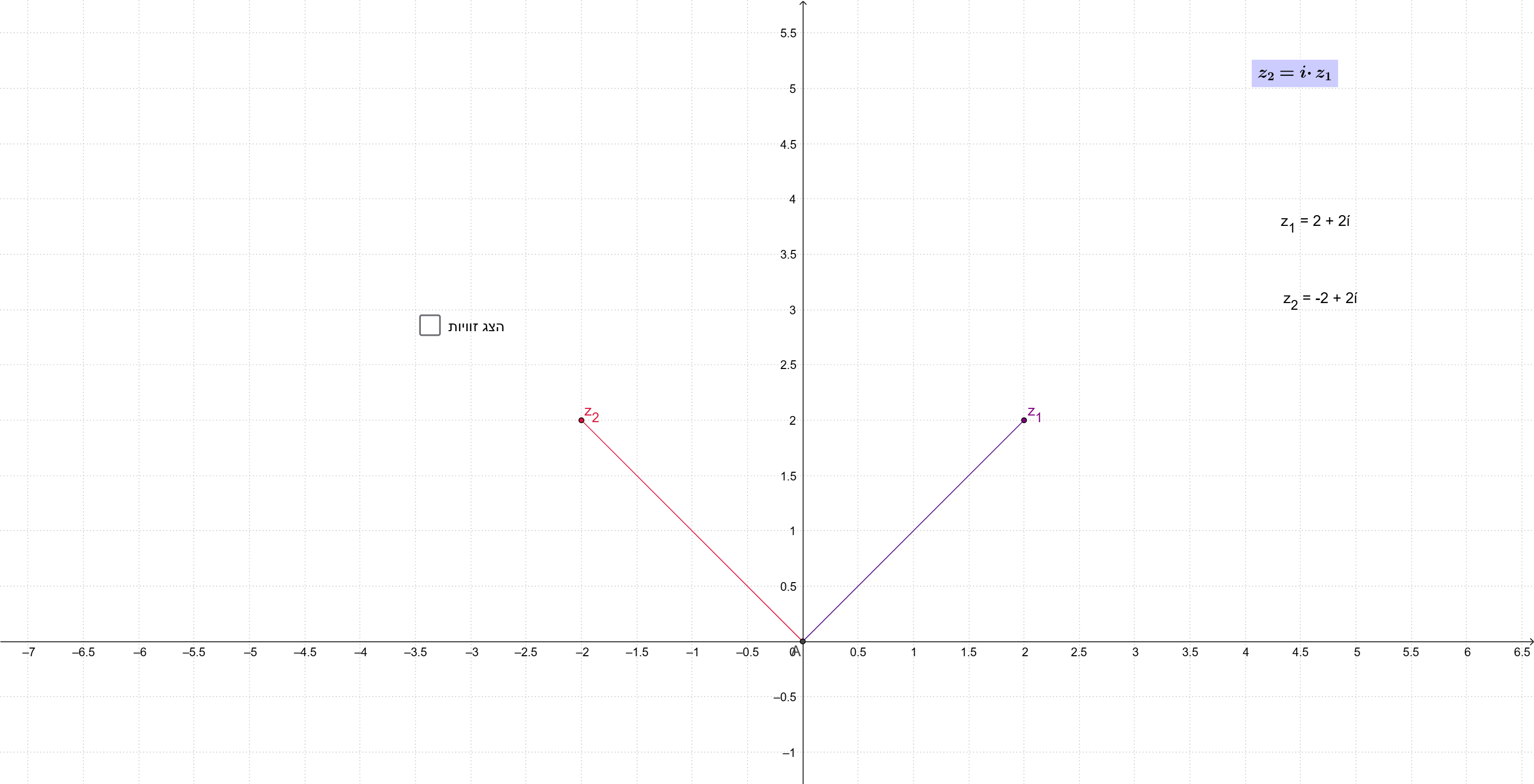 ניתן לראות במערכת הצירים את המספרים המרוכבים ואת הזווית ביניהם.