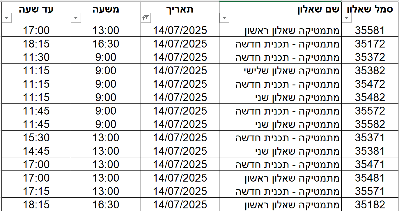 | 14.7.25 16:30-18:15 | 35172 מתמטיקה שאלון ראשון |