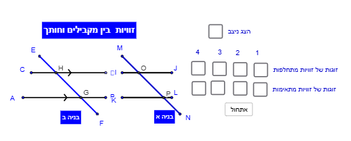 דף עבודה ויישום דינאמי לחקירה וגילוי של המשפטים על זוויות הנוצרות בין חותך למקבילים.