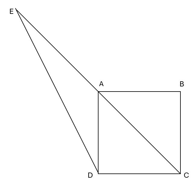 נתון ריבוע ABCD שאורך צלעו a. אלכסון הריבוע AC מונח על הקטע EC, מתקיים AC=EA.