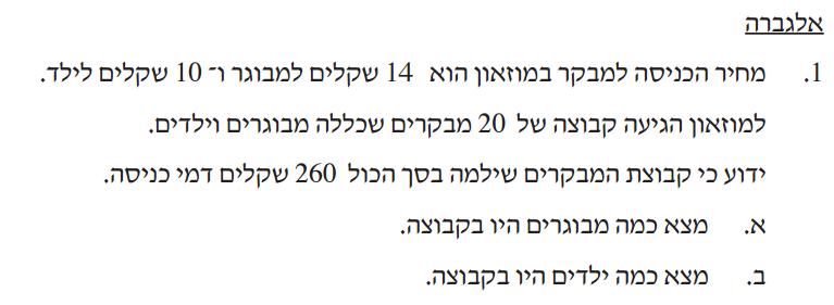 במידה ולא הצלחתם צפו בפתרון, הבינו את התרגיל ונסו לפתור בכוחות עצמכם.