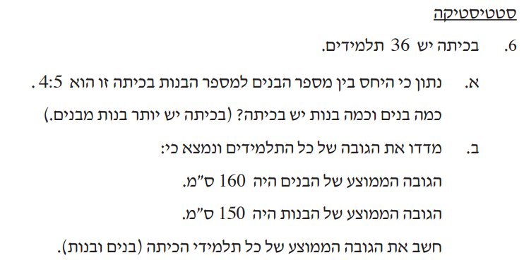 פתרון מלא ומוקלט לשאלה 6 מבחינת בגרות חורף 2012 בנושא סטטיסטיקה: