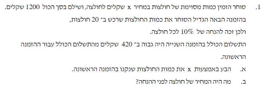 פתרון מלא ומוקלט לשאלה 1 מבחינת בגרות קיץ 2012 מועד ב' בנושא בעיות מילוליות: