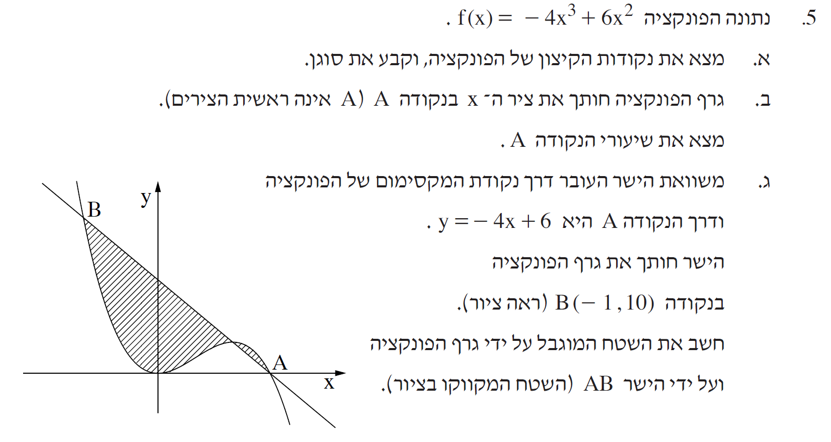 פתרון מלא ומוקלט לשאלה 5 מבחינת בגרות חורף 2013 בנושא חשבון דיפרנציאלי ואינטגרלי: